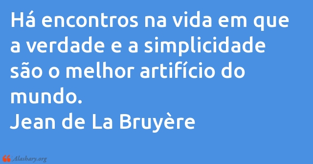 Há encontros na vida em que a verdade e a simplicidade são o melhor artifício do mundo. Jean de La Bruyère