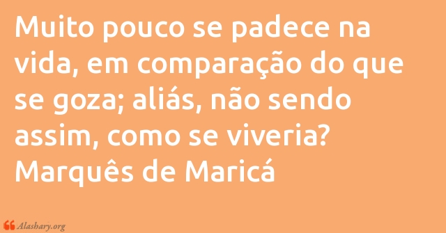 Muito pouco se padece na vida, em comparação do que se goza; aliás, não sendo assim, como se viveria? Marquês de Maricá