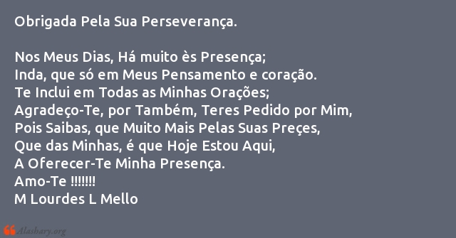 Obrigada Pela Sua Perseverança.