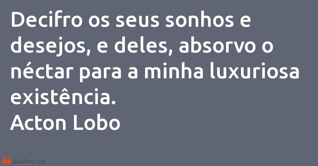 Decifro os seus sonhos e desejos, e deles, absorvo o néctar para a minha luxuriosa existência. Acton Lobo