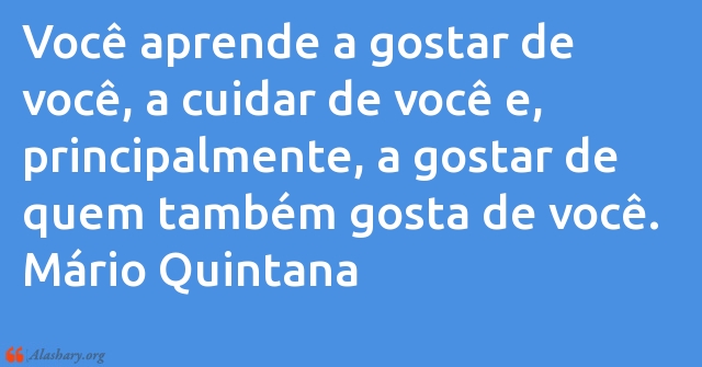Você aprende a gostar de você, a cuidar de você e, principalmente, a gostar de quem também gosta de você. Mário Quintana
