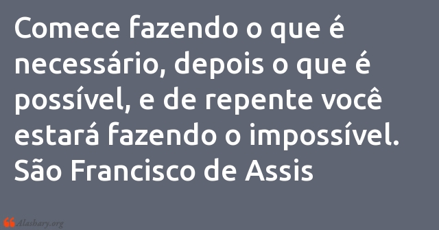 Comece fazendo o que é necessário, depois o que é possível, e de repente você estará fazendo o impossível.