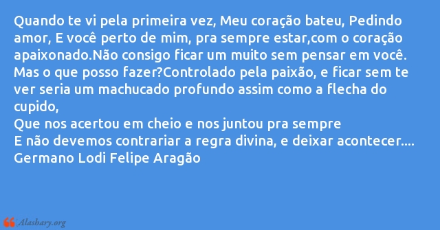 Quando te vi pela primeira vez, Meu coração bateu, Pedindo amor, E você perto de mim, pra sempre estar,com o coração apaixonado.Não consigo ficar um muito sem pensar em você.