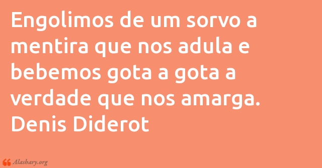 Engolimos de um sorvo a mentira que nos adula e bebemos gota a gota a verdade que nos amarga. Denis Diderot