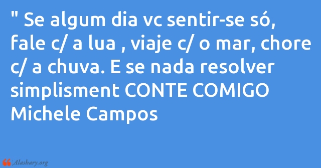 " Se algum dia vc sentir-se só, fale c/ a lua , viaje c/ o mar, chore c/ a chuva. E se nada resolver simplisment CONTE COMIGO