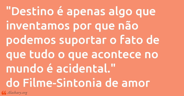 "Destino é apenas algo que inventamos por que não podemos suportar o fato de que tudo o que acontece no mundo é acidental."