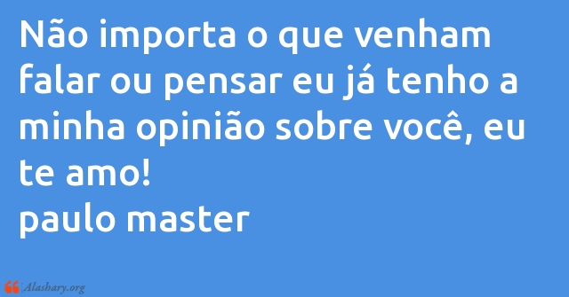 Não importa o que venham falar ou pensar eu já tenho a minha opinião sobre você, eu te amo! paulo master