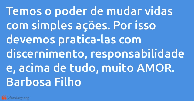 Temos o poder de mudar vidas com simples ações. Por isso devemos pratica-las com discernimento, responsabilidade e, acima de tudo, muito AMOR.