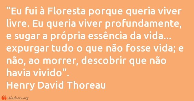 "Eu fui à Floresta porque queria viver livre. Eu queria viver profundamente, e sugar a própria essência da vida... expurgar tudo o que não fosse vida; e não, ao morrer, descobrir que não havia vivido".