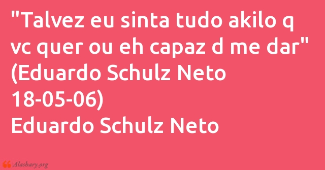 "Talvez eu sinta tudo akilo q vc quer ou eh capaz d me dar" (Eduardo Schulz Neto 18-05-06) Eduardo Schulz Neto