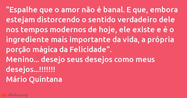 "Espalhe que o amor não é banal. E que, embora estejam distorcendo o sentido verdadeiro dele nos tempos modernos de hoje, ele existe e é o ingrediente mais importante da vida, a própria porção mágica da Felicidade".