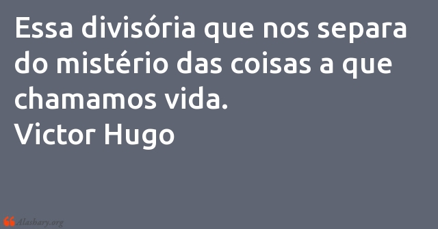 Essa divisória que nos separa do mistério das coisas a que chamamos vida. Victor Hugo