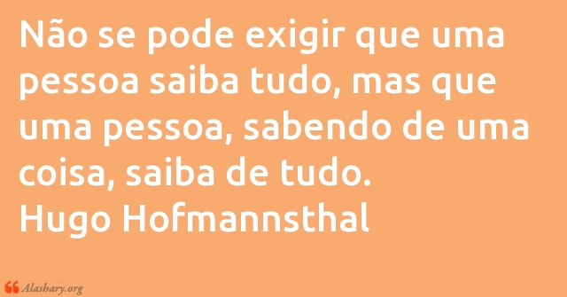 Não se pode exigir que uma pessoa saiba tudo, mas que uma pessoa, sabendo de uma coisa, saiba de tudo. Hugo Hofmannsthal
