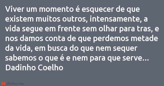 Viver um momento é esquecer de que existem muitos outros, intensamente, a vida segue em frente sem olhar para tras, e nos damos conta de que perdemos metade da vida, em busca do que nem sequer sabemos o que é e nem para que serve...