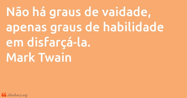 Não há graus de vaidade, apenas graus de habilidade em disfarçá-la. Mark Twain