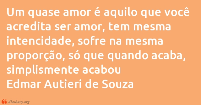 Um quase amor é aquilo que você acredita ser amor, tem mesma intencidade, sofre na mesma proporção, só que quando acaba, simplismente acabou