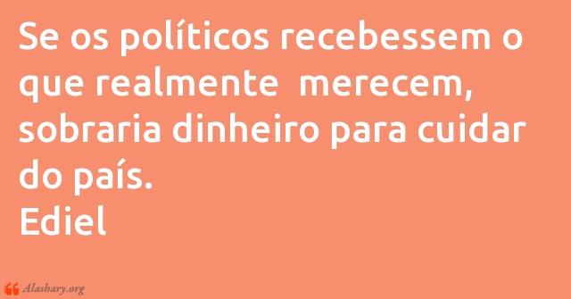 Se os políticos recebessem o que realmente merecem, sobraria dinheiro para cuidar do país. Ediel