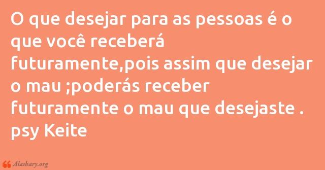 O que desejar para as pessoas é o que você receberá futuramente,pois assim que desejar o mau ;poderás receber futuramente o mau que desejaste . psy Keite
