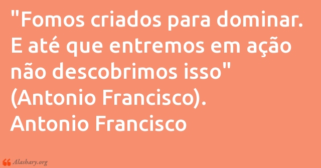 "Fomos criados para dominar. E até que entremos em ação não descobrimos isso" (Antonio Francisco). Antonio Francisco