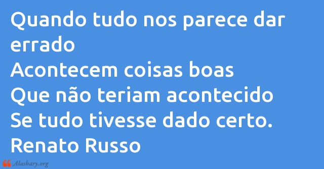 Quando tudo nos parece dar errado Acontecem coisas boas Que não teriam acontecido Se tudo tivesse dado certo. Renato Russo