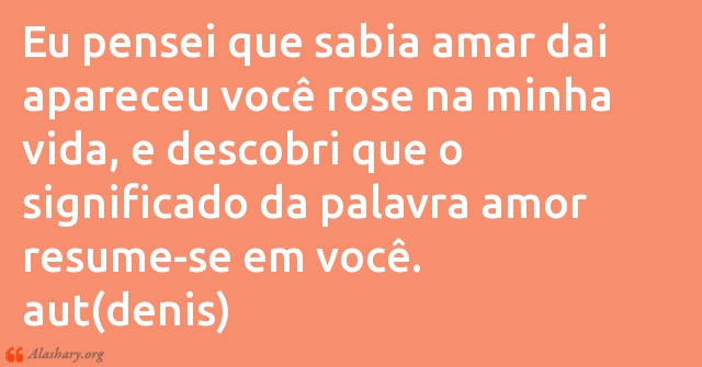 Eu pensei que sabia amar dai apareceu você rose na minha vida, e descobri que o significado da palavra amor resume-se em você.