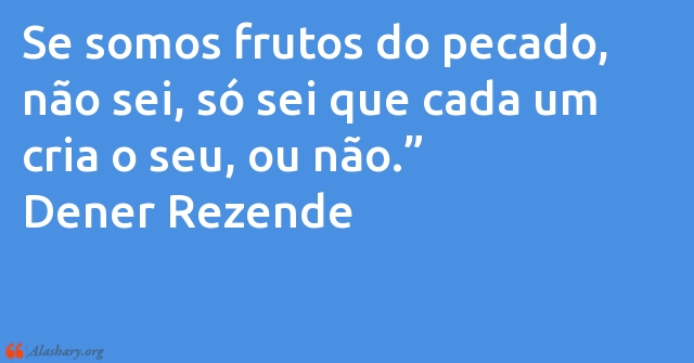 Se somos frutos do pecado, não sei, só sei que cada um cria o seu, ou não.” Dener Rezende