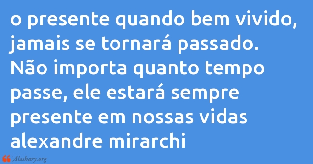 o presente quando bem vivido, jamais se tornará passado. Não importa quanto tempo passe, ele estará sempre presente em nossas vidas alexandre mirarchi