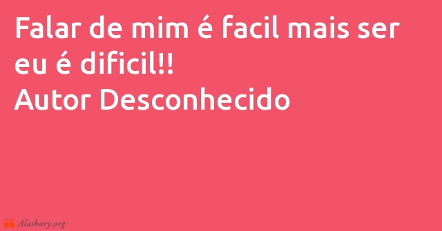 Falar de mim é facil mais ser eu é dificil!! Autor Desconhecido
