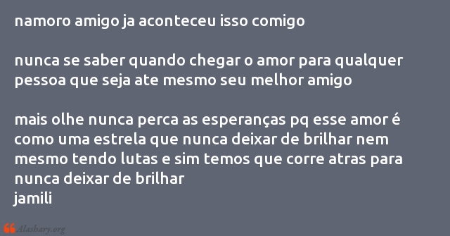 mais olhe nunca perca as esperanças pq esse amor é como uma estrela que nunca deixar de brilhar nem mesmo tendo lutas e sim temos que corre atras para nunca deixar de brilhar
