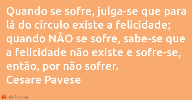 Quando se sofre, julga-se que para lá do círculo existe a felicidade; quando NÃO se sofre, sabe-se que a felicidade não existe e sofre-se, então, por não sofrer. Cesare Pavese