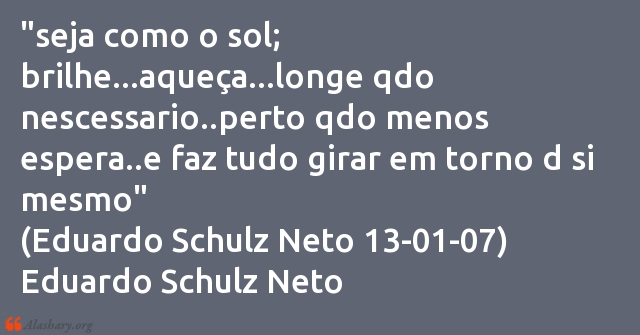 "seja como o sol; brilhe...aqueça...longe qdo nescessario..perto qdo menos espera..e faz tudo girar em torno d si mesmo" (Eduardo Schulz Neto 13-01-07) Eduardo Schulz Neto