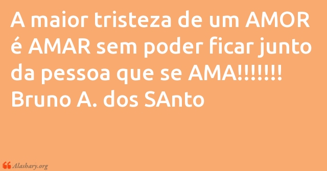 A maior tristeza de um AMOR é AMAR sem poder ficar junto da pessoa que se AMA!!!!!!! Bruno A. dos SAnto