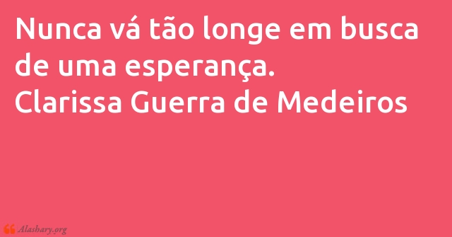 Clarissa Guerra de Medeiros: Nunca vá tão longe em busca de uma esperança.