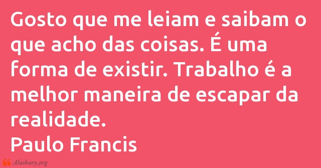Gosto que me leiam e saibam o que acho das coisas. É uma forma de existir. Trabalho é a melhor maneira de escapar da realidade.