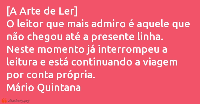 O leitor que mais admiro é aquele que não chegou até a presente linha. Neste momento já interrompeu a leitura e está continuando a viagem por conta própria.