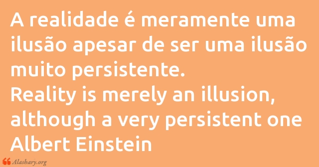 A realidade é meramente uma ilusão apesar de ser uma ilusão muito persistente. Reality is merely an illusion, although a very persistent one Albert Einstein