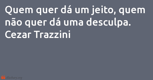 Quem quer dá um jeito, quem não quer dá uma desculpa. Cezar Trazzini