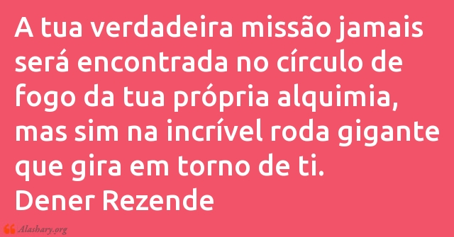 A tua verdadeira missão jamais será encontrada no círculo de fogo da tua própria alquimia, mas sim na incrível roda gigante que gira em torno de ti.
