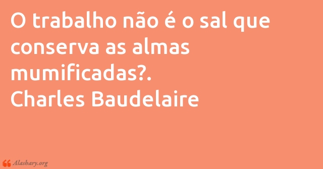 O trabalho não é o sal que conserva as almas mumificadas?. Charles Baudelaire