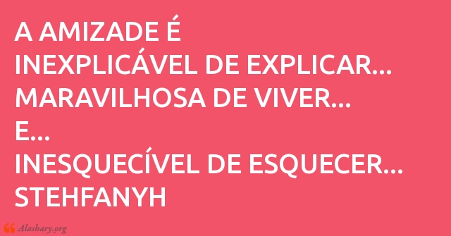 A AMIZADE É INEXPLICÁVEL DE EXPLICAR... MARAVILHOSA DE VIVER... E... INESQUECÍVEL DE ESQUECER... STEHFANYH