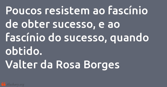Poucos resistem ao fascínio de obter sucesso, e ao fascínio do sucesso, quando obtido. Valter da Rosa Borges