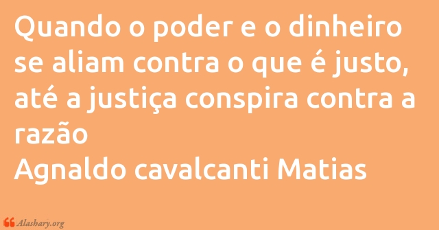 Quando o poder e o dinheiro se aliam contra o que é justo, até a justiça conspira contra a razão Agnaldo cavalcanti Matias