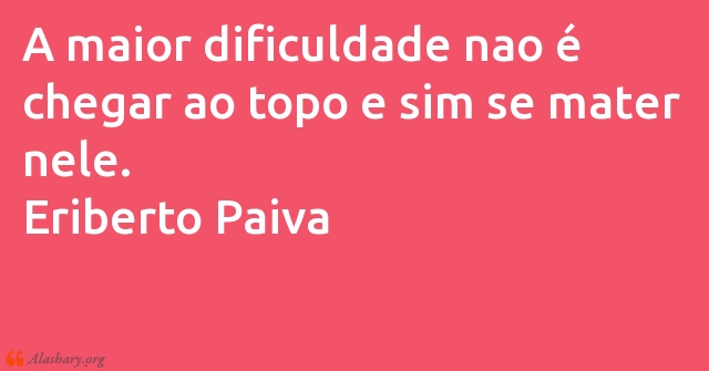 A maior dificuldade nao é chegar ao topo e sim se mater nele. Eriberto Paiva