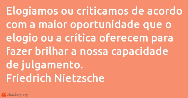 Elogiamos ou criticamos de acordo com a maior oportunidade que o elogio ou a crítica oferecem para fazer brilhar a nossa capacidade de julgamento.