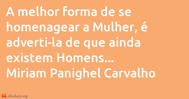 A melhor forma de se homenagear a Mulher, é adverti-la de que ainda existem Homens... Miriam Panighel Carvalho