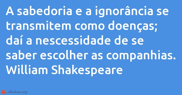 A sabedoria e a ignorância se transmitem como doenças; daí a nescessidade de se saber escolher as companhias.