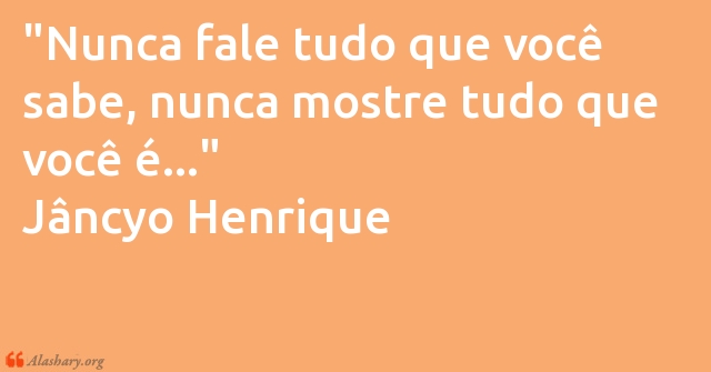 "Nunca fale tudo que você sabe, nunca mostre tudo que você é..."