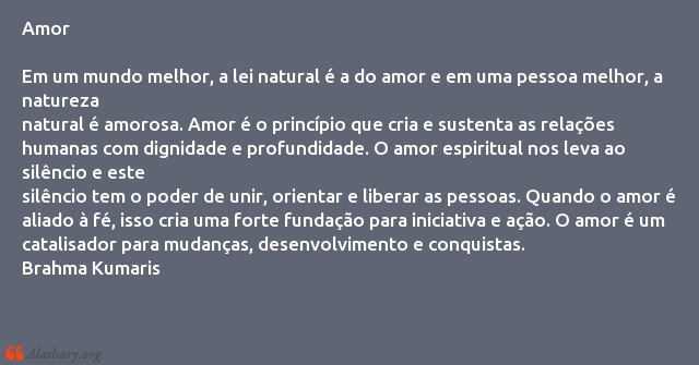 natural é amorosa. Amor é o princípio que cria e sustenta as relações humanas com dignidade e profundidade. O amor espiritual nos leva ao silêncio e este