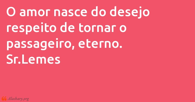 O amor nasce do desejo respeito de tornar o passageiro, eterno. Sr.Lemes