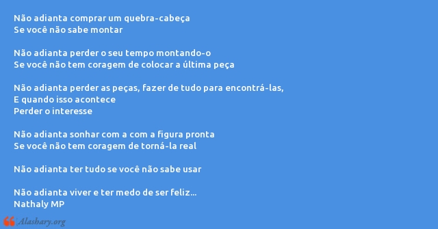 Nathaly MP: Não adianta comprar um quebra-cabeça Se você n�